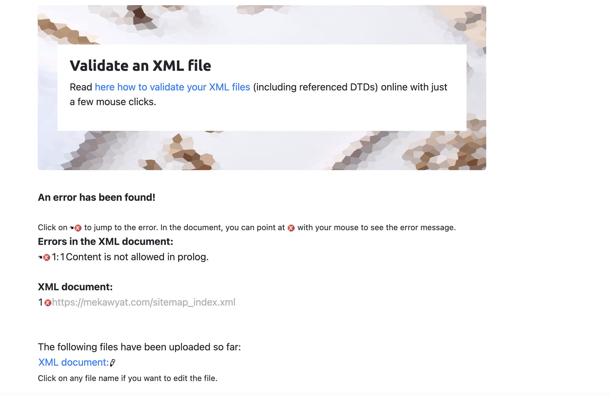 When I validate my website sitemap, I found that issue, “1 Content is not allowed in prolog”