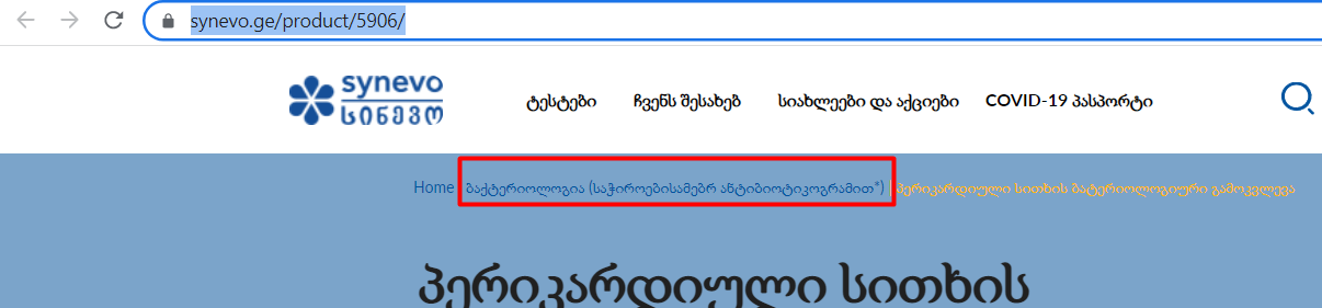 For example, the product below is under the category https://synevo.ge/product-category/bacteriology/