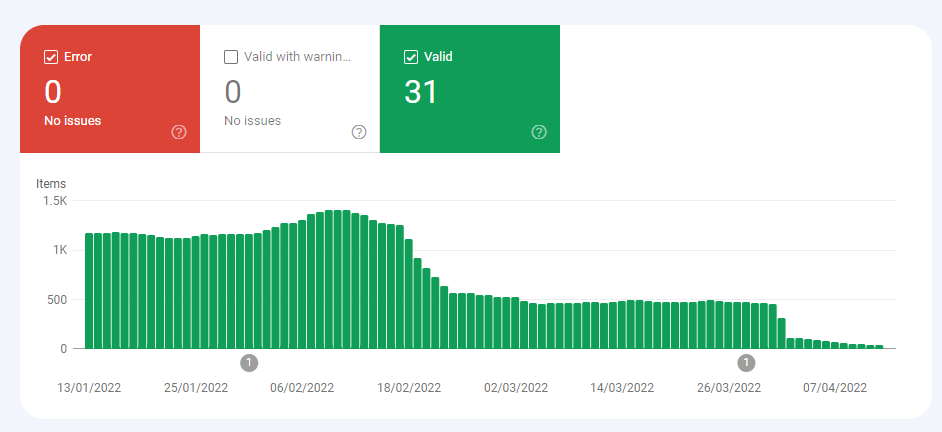 We have active breadcrumbs for our pages through Rankmath. Unfortunately, since mid-February we are seeing dramatic decrease in valid items from 1.4k to 30… The problem is that we see no errors or warnings in the GSC breadcrumbs report and cannot find the thing that is causing this huge drop.