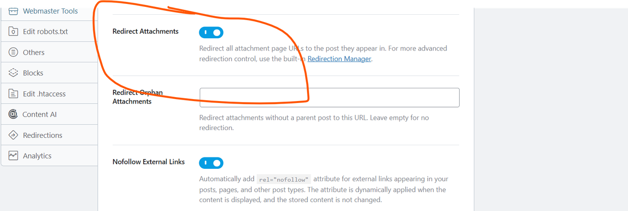 Or this option in Rank Math (Redirect Attachments) is for those images which are unattached
