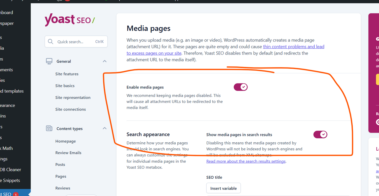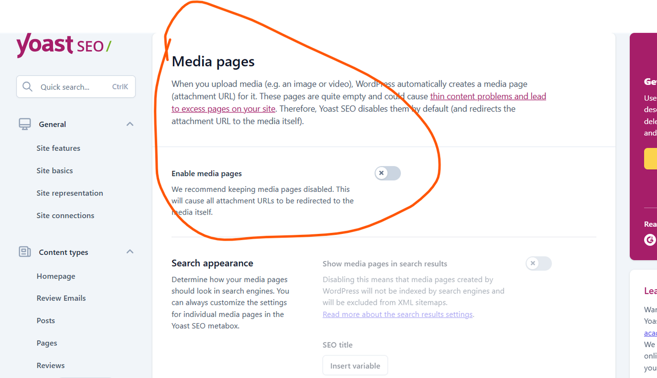 Like there is an option in Yoast SEO called Enable media pages, if we turn it on then Yoast SEO creates a separate webpage of photos or images. (I know that it has to be kept off)