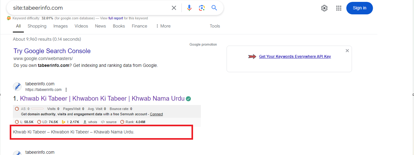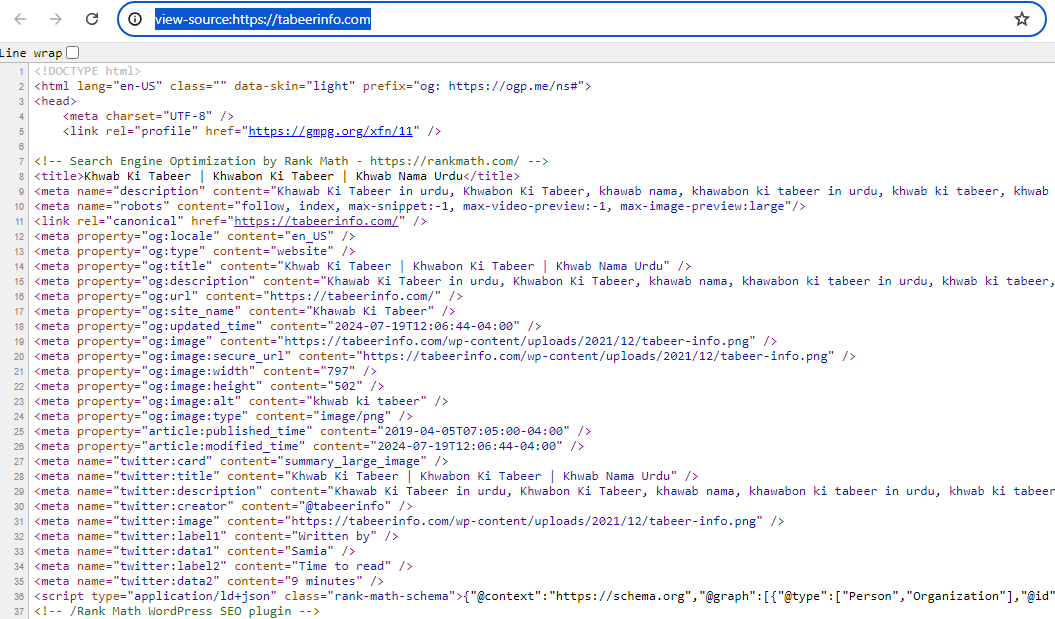 If you notice, the text: Interpretation of Dreams, Khwab Ki Tabeer, Khwabon Ki Tabeer in Urdu, Khawab Nama, Khawab Ki Tabeer, khawab ki tabeer 2024, baby names Urdu which Google chose is the first paragraph and it reoccurs on the same page emphasizing its importance.