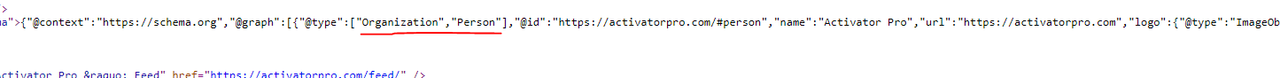Showing schema graph of 2 types in my website Like {“@context”:”https://schema.org”,”@graph”:[{“@type”:[“Organization”,”Person”], I only only person i have also selected person from setting but incode display of it