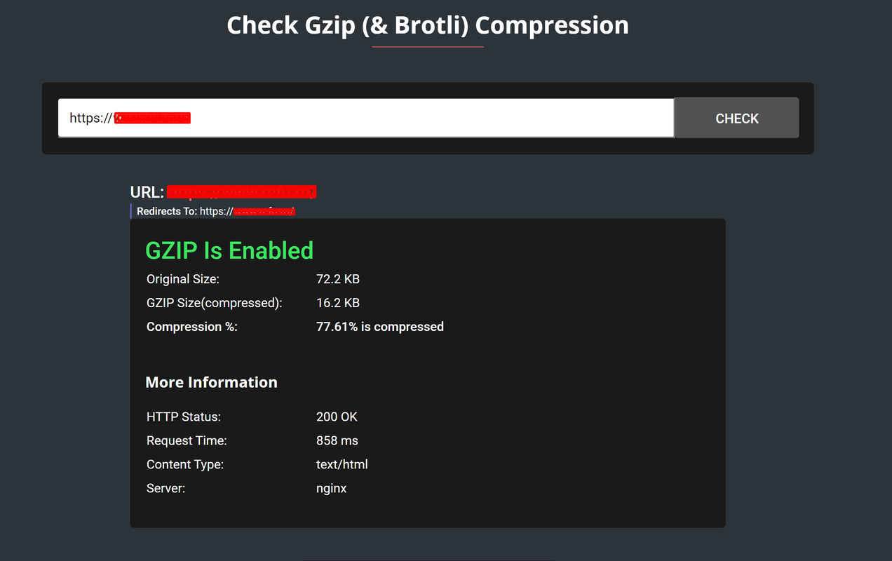 The size of the HTML document is 73 Kb, over the average of 33 Kb and our recommendation of 50 Kb.But compression for HTML is active, so need to show that is optimized, right?
