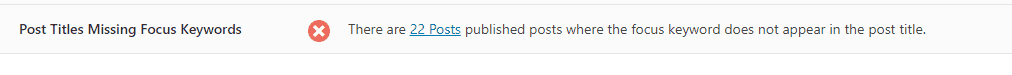 After Analyzing the website, I have found that in “Post Titles Missing Focus Keywords” have 22 posts without focus keyword, but when I click the link to get those 22 posts. But it redirects to a page link where i am seeing all the post.