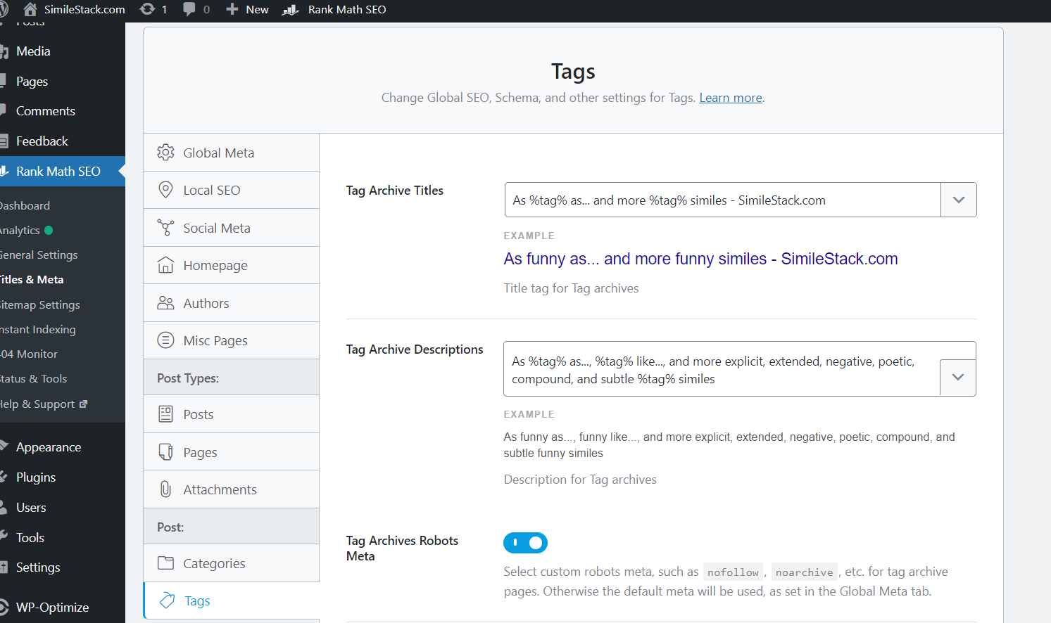 Rank Math ‘Titles and Meta’ Options and Settings